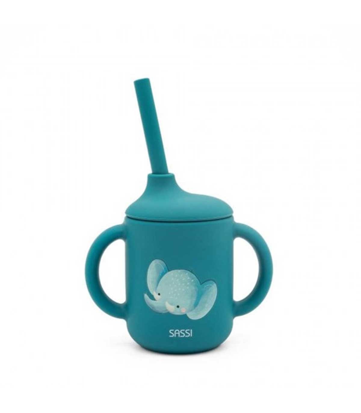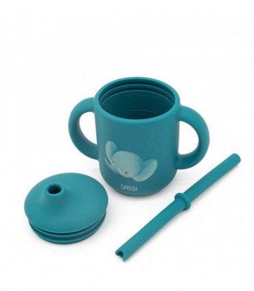 لیوان نی‌دار ساسی طرح فیل با طراحی جذاب برای کودکان نوپا از جنس صد‌‌ در صد سیلیکونی است. درب لیوان نی‌دار ساسی، ضد‌‌‌ نشت است و طراحی محصول با دو دسته، در دست گرفتن لیوان را برای دلبند شما راحت‌تر می‌کند. بنابراین کودک می‌تواند به‌تنهایی و مستقل از لیوان استفاده کند. شما می‌توانید این لیوان را با خیال راحت و با ایمنی کامل در فریزر و مایکرویو قرار دهید. شستشوی این محصول ساسی نیز آسان است و تمام قطعات مثل در و نی از هم جدا می‌شود و به راحتی درون ماشین ظرفشویی قرار می‌گیرد. طراحی زیبا و فانتزی لیوان نی‌دار ساسی برای نوپایان بسیار جذاب است.