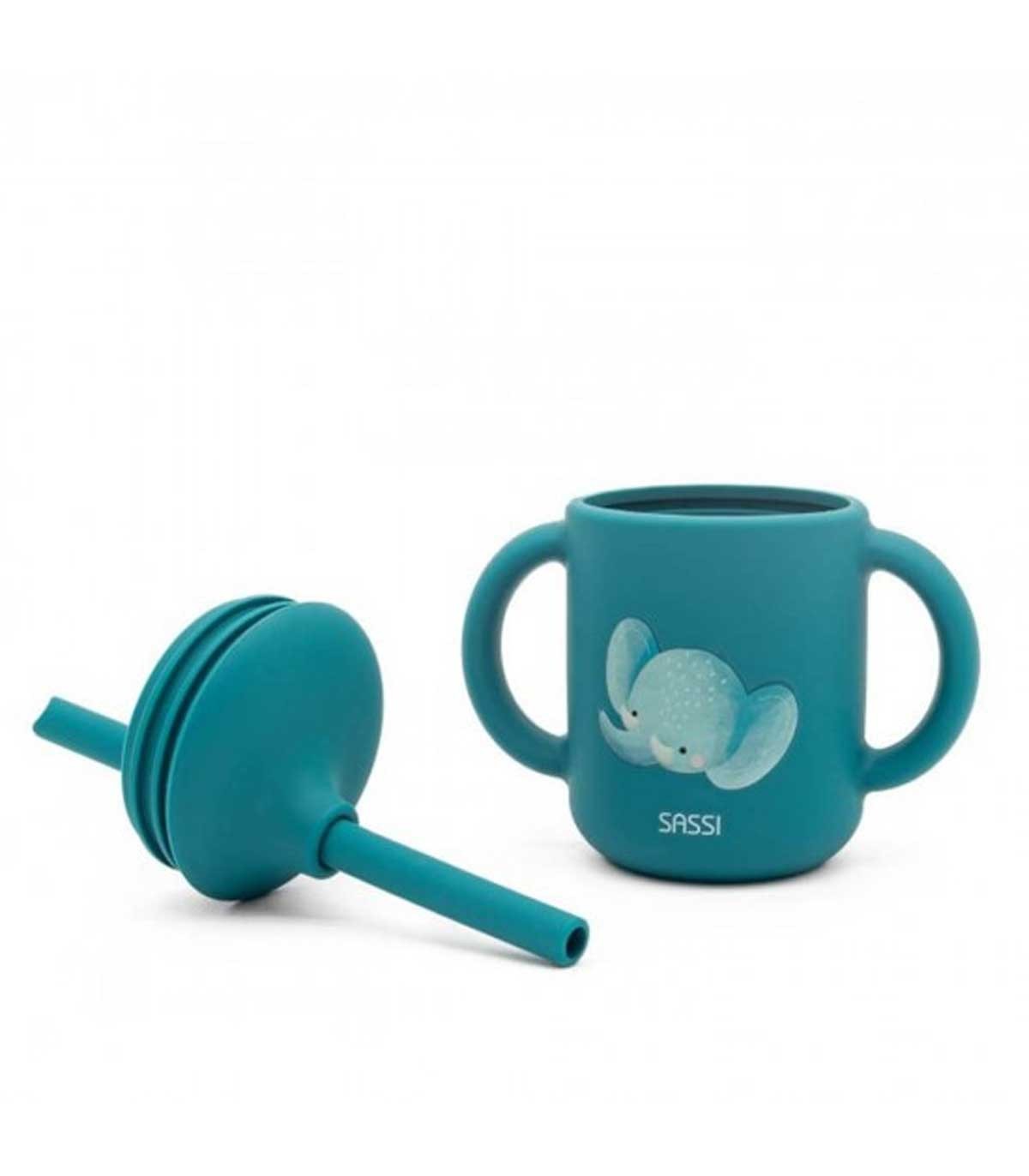 لیوان نی‌دار ساسی طرح فیل از جنس سلیکون و قابل استفاده در دمای مایکرویو و فریزر است.