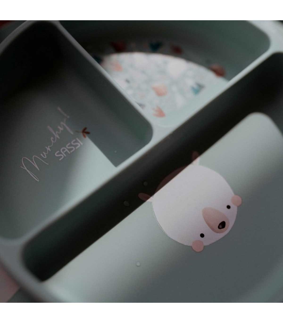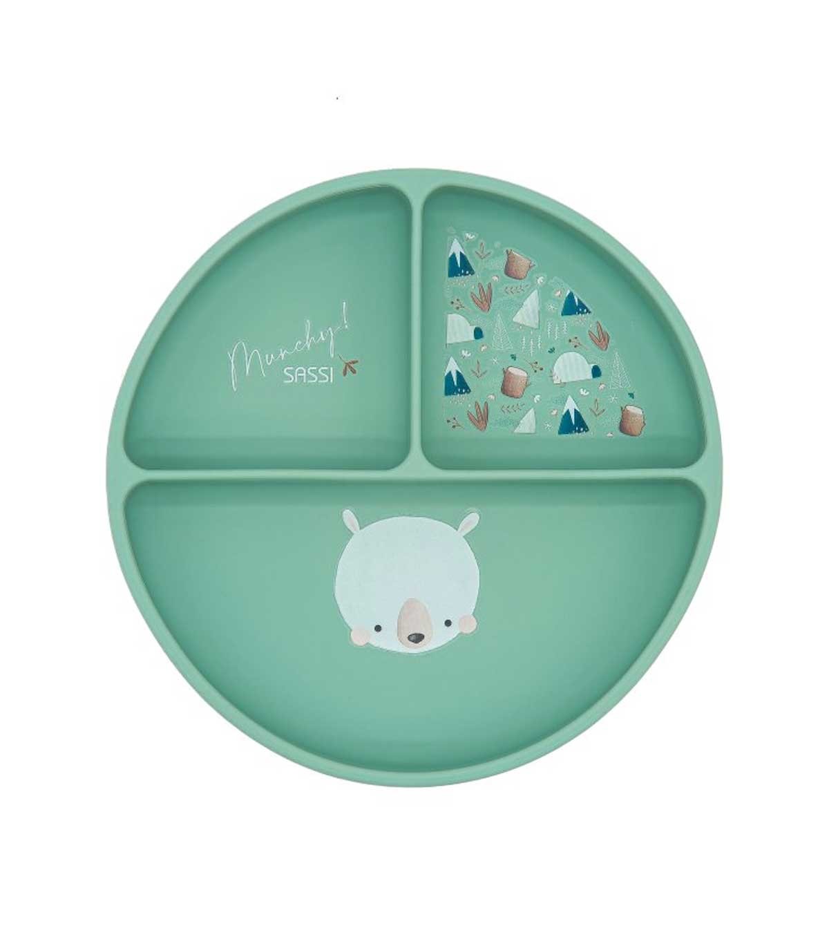 برای شروع غذای کمکی کودک توصیه ما انتخاب یک بشقاب با طراحی جذاب و فانتزی و پایه مکشی برای برنگشتن بشقاب و مواد غذایی داخل آن است. بشقاب کودک ساسی خرس قطبی این ویژگی‌ها را دارد و کودک را به غذا خوردن تشویق می‌کند. این محصول از جنس سیلیکون استاندارد برای مصرف مواد غذایی تولید شده است و دارای چند قسمت برای قرار دادن خوراکی‌های متنوع است. شما می‌توانید با خیال راحت این بشقاب از برند ساسی را داخل مایکرویو و ماشین ظرفشویی قرار دهید.