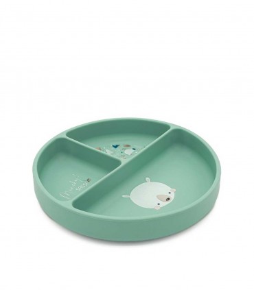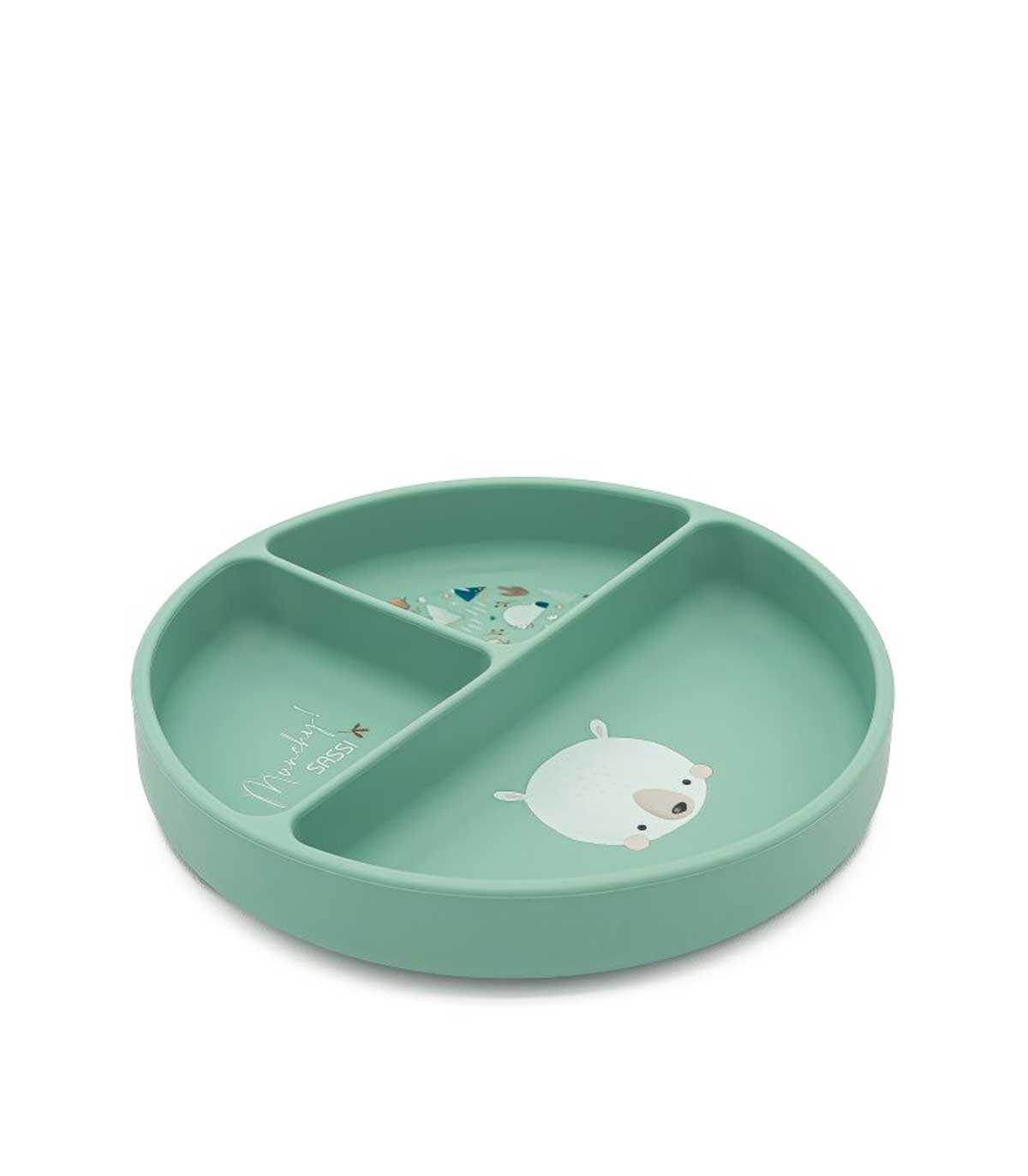 بشقاب کودک ساسی طرح خرس قطبی دارای تقسیم‌بندی است و با خیال راحت می‌توانید آن را داخل مایکرویو و ماشین ظرفشویی قرار دهید.