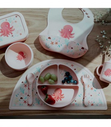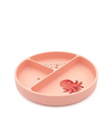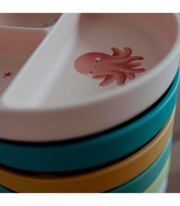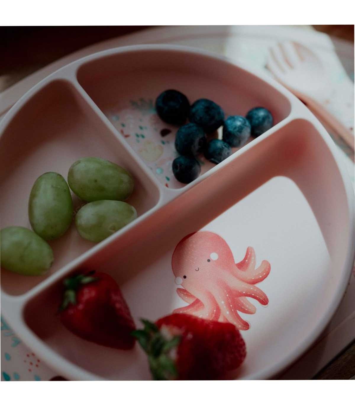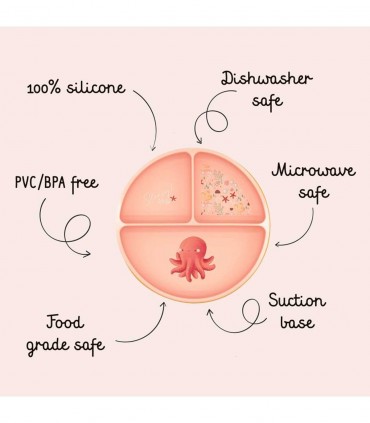 بشقاب کودک ساسی طرح اختاپوس دارای تقسیم‌بندی است و با خیال راحت می‌توانید آن را داخل مایکرویو و ماشین ظرفشویی قرار دهید.