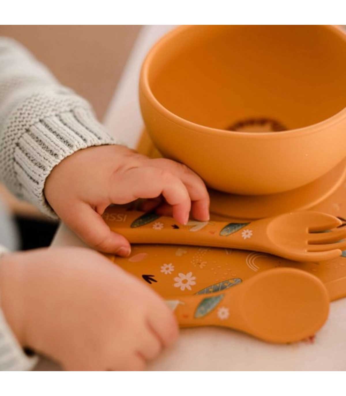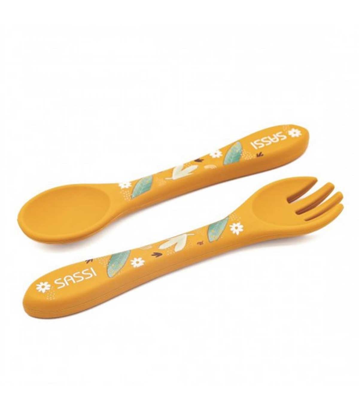 قاشق و چنگال کودک ساسی از جنس سیلیکون با طراحی ایمن یک انتخاب عالی برای شروع غذای کمکی دلبند شما است.