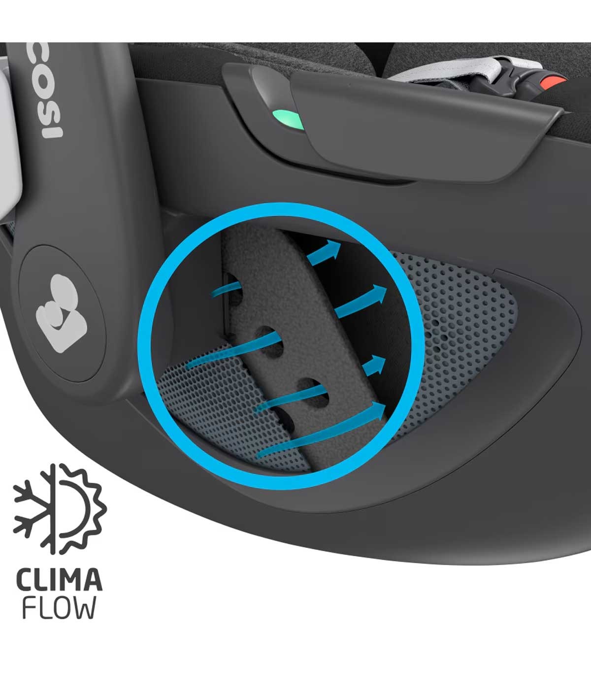 برای راحتی بیشتر، این محصول دارای سیستم ClimaFlow و نشیمن مشبک و قابل تنفس است که به تنظیم دمای بدن کودک کمک می‌کند. همچنین فناوری ضربه جانبی G-CELL نیز کودک را در مقابل ضربات جانبی هنگام تصادف محافظت می‌کند.