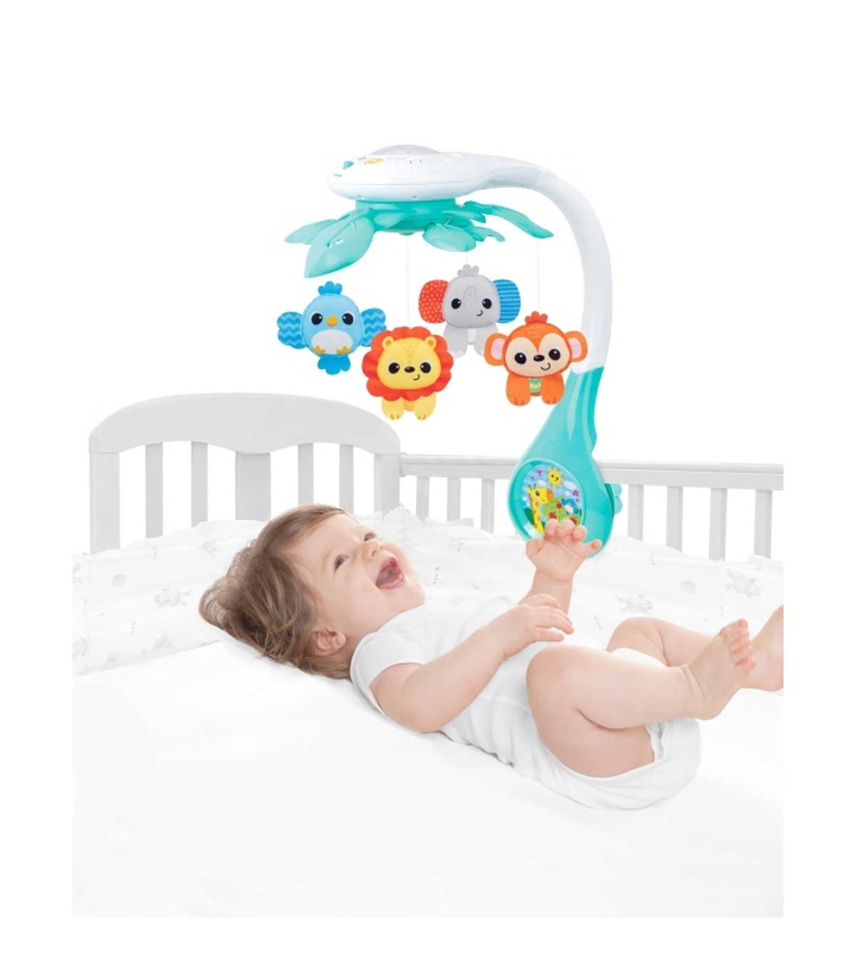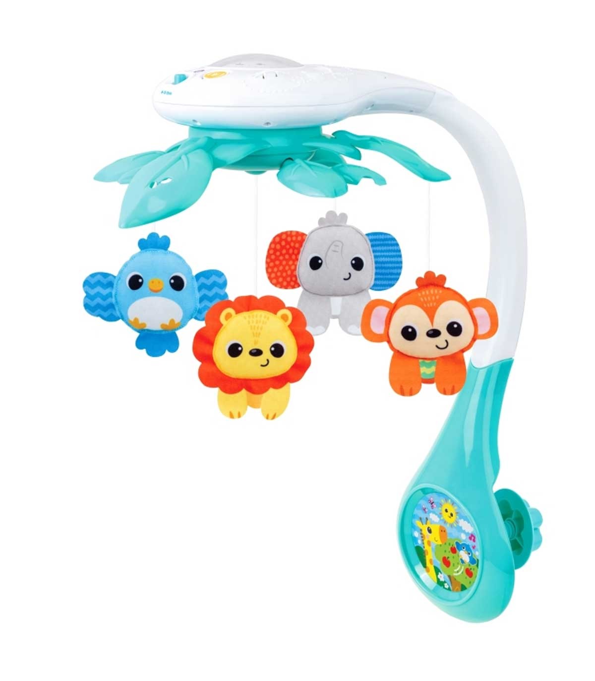 آویز تخت حیوانات جنگل وین فان موزیکال با پخش نورهای رنگی همراه با صدای طبیعت و لالایی یک انتخاب هوشمندانه برای نوزادان از بدو تولد است.