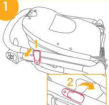 در کالسکه یک دکمه وجود دارد که اگر آن را فشار دهیم باعث میشود قفلی که کالسکه را در حالت تا شده نگه داشتهاست آزاد شود. ممکن است بپرسید از کجا بفهمیم قفل کدام دکمه است؟