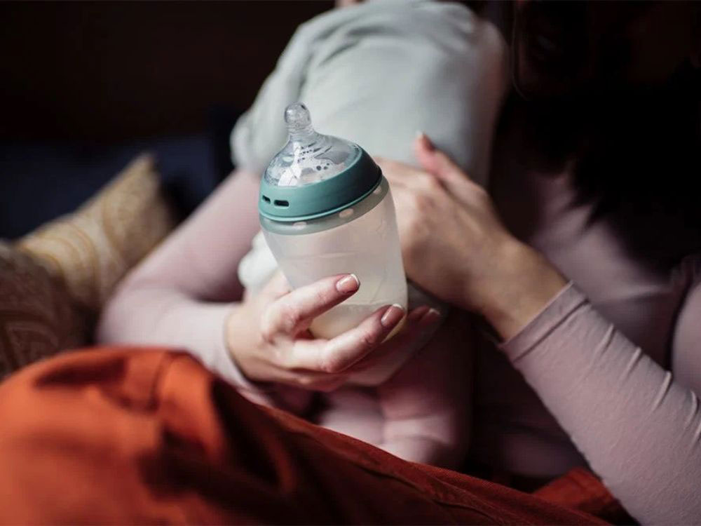 • شیشه شیر را در دهان نوزاد می‌گذارید تا با میک زدن و تغذیه شیر به خواب برود