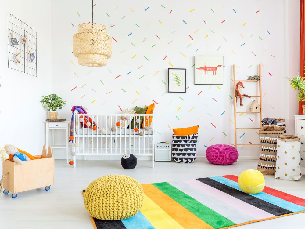 • سفید: یک انتخاب کلاسیک که می تواند به اتاق کودک احساس تازگی و روشنایی بدهد. همچنین به عنوان پایه‌ای عالی برای افزودن رنگ‌ها به لوازم جانبی و دکورها عمل می‌کند.