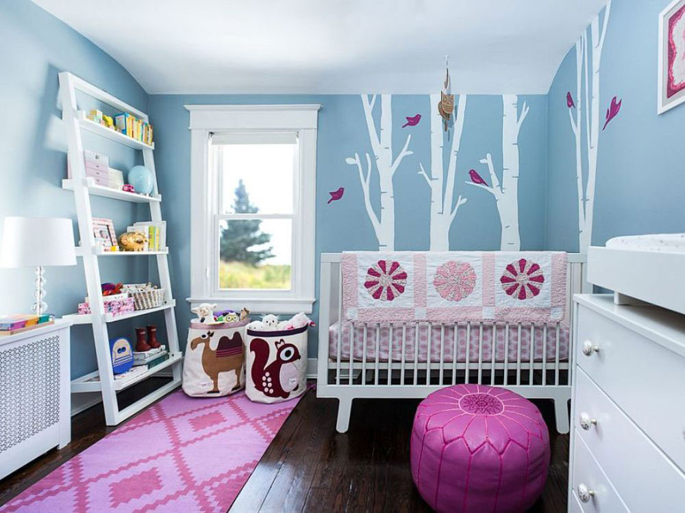 از آن جایی که رنگ صورتی نیز حس خوبی را به نوزاد می‌دهد، اما با گذشت زمان حس بی‌قراری او را برمی‌انگیزاند، بنابراین ترکیب این رنگ با آبی بسیار عالی می‌شود.
