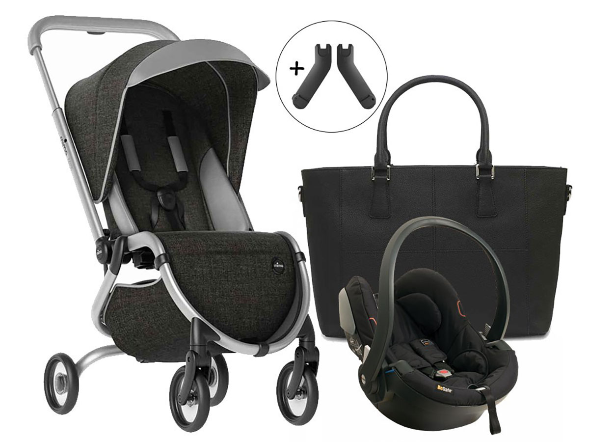 • ست شامل صندلی کالسکه، شاسی بسیار سبک، سایبان، سبد حمل نوزاد (کریکات)،آداپتور، ساک حمل و لیوان است.