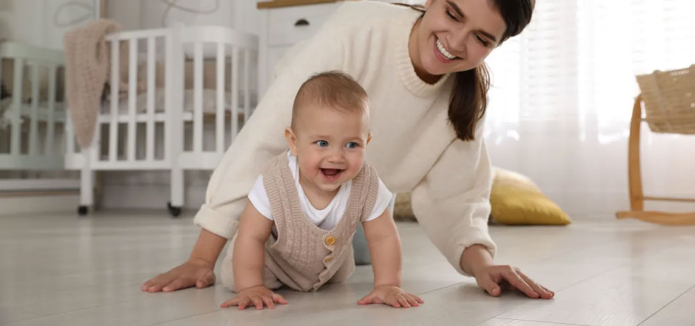 • چهار دست و پا رفتن: بسیاری از نوزادان در این مرحله شروع به حرکت به صورت چهار دست و پا می‌کنند که نشان‌دهنده تقویت عضلات دست و پا و هماهنگی بین آن‌هاست.​ این اتفاق در بازه ۷ تا ۱۰ ماهگی رخ می‌دهد. بنابراین هنگام تعویض پوشک، زمان بازی یا وقتی برای لحظاتی روی تخت شماست به شدت مراقبش باشید تا خدایی نکرده از ارتفاع به پایین پرت نشود!