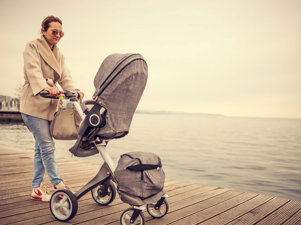 پیاده‌روی با کالسکه نوزاد یک ایده خوب برای ورزش شما در زمان نگه داری از کودک سه ماهه است. همچنین کودک می‌تواند محیط بیرون را ببیند و صدای پرندگان و خیابان را بشنود.